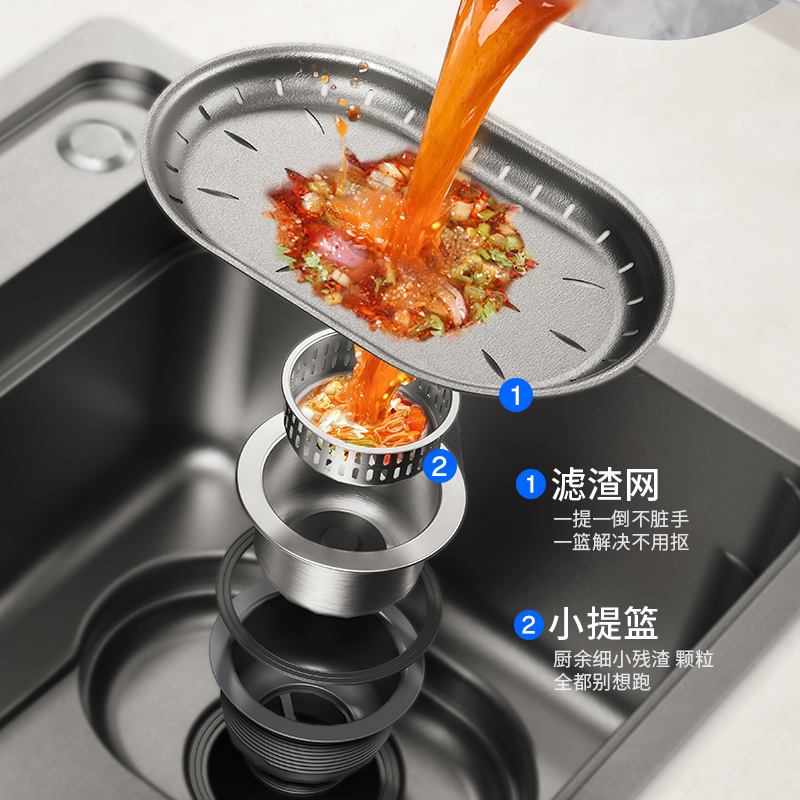 天箭牌银色聚渣宝 水槽大单槽304不锈钢厨房洗菜盆洗碗槽单盆台下盆