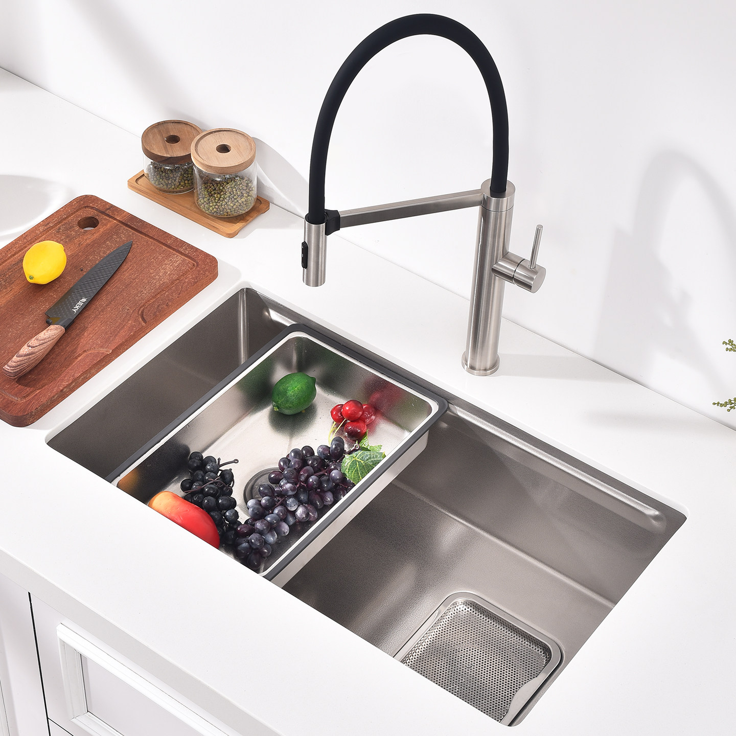 乐唯加厚316不锈钢水槽是一款专为现代厨房设计的高品质多功能洗菜盆,采用医用级316不锈钢材质,耐腐蚀、抗锈蚀性能优异,远超普通304不锈钢。加厚面板设计,结构稳固,有效降低噪音,延长使用寿命。大单槽设计提供充裕操作空间,满足洗菜、洗碗、沥水等多种需求。台下盆安装方式美观整洁,便于台面清洁,无缝衔接更防污。表面精细拉丝工艺,防刮耐磨,易于打理。适配多种厨房风格,是追求品质与实用性的家庭理想之选。乐唯水槽,以匠心工艺守护厨房洁净与高效。