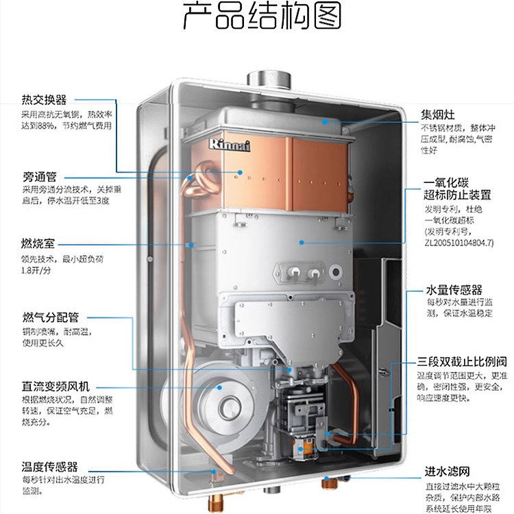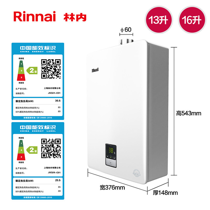 Rinnai林内S01系列燃气热水器,拥有13升与16升两种容量可选,专为现代家庭设计。采用先进的恒温技术,精准调控水温,告别忽冷忽热,洗浴更舒适。搭载静音运行系统,有效降低燃烧与水流噪音,营造安静居家环境。内置多重安全保护,包括防冻、防倒风、CO防护等,使用更安心。高效节能,符合国家一级能效标准,既环保又省气。简约外观设计,适配多种装修风格。S01系列以卓越品质与人性化体验,重新定义舒适热水生活,是追求品质家庭的理想之选。