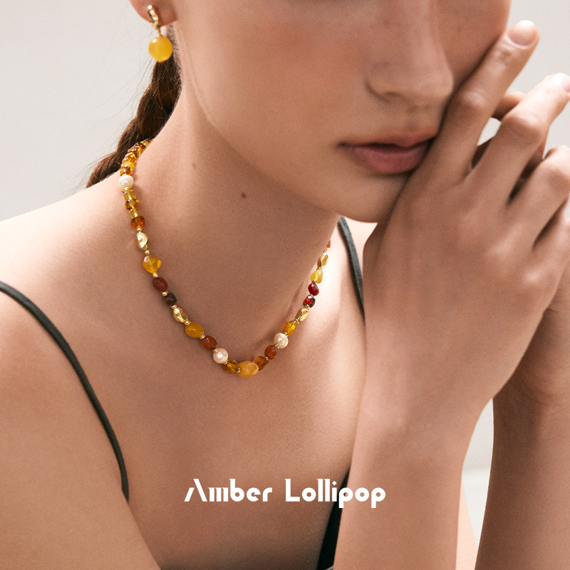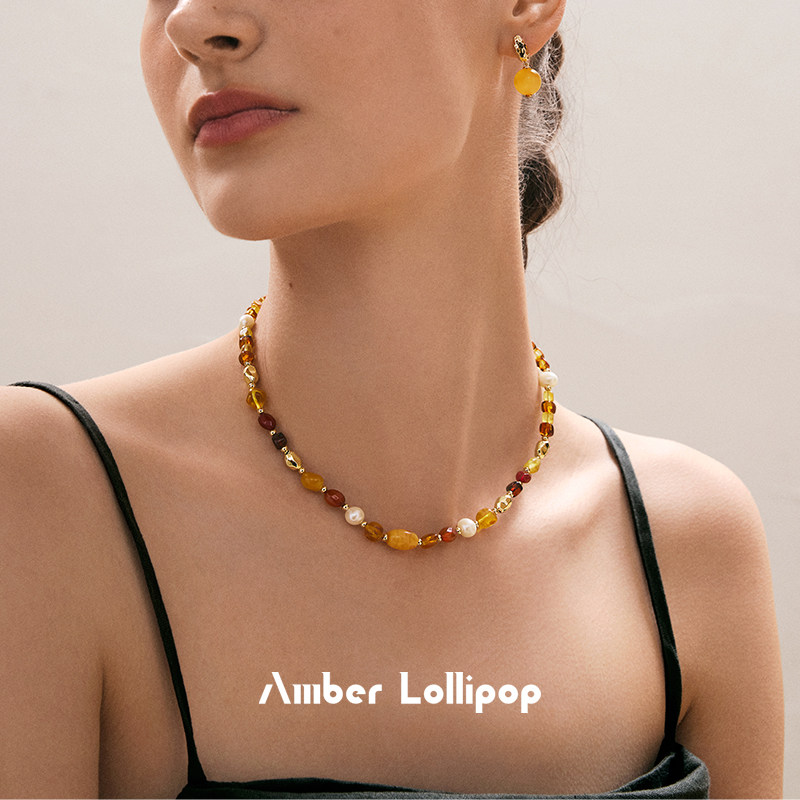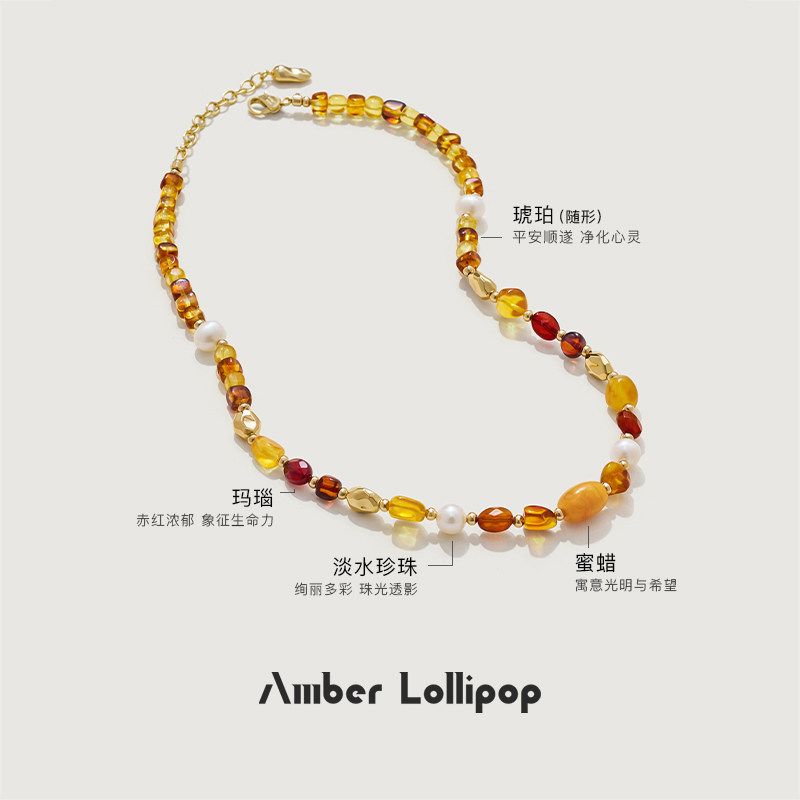 天猫Amber Lollipop蜜蜡项链女珍珠颈链天然宝石串珠锁骨链 炽阳系列