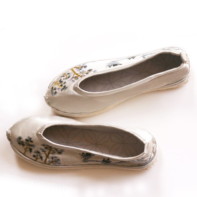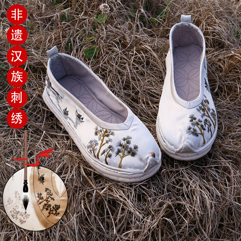 淘宝刺绣手工非遗秀禾绣花鞋女原创直销新款古风汉服鞋子复古水墨山水