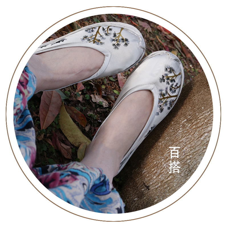 淘千层底手工布鞋春秋季时尚休闲单鞋女透气养脚绣花鞋卡通图案定制