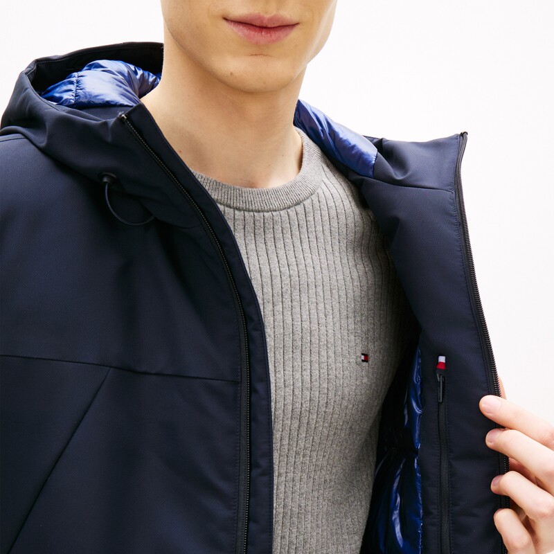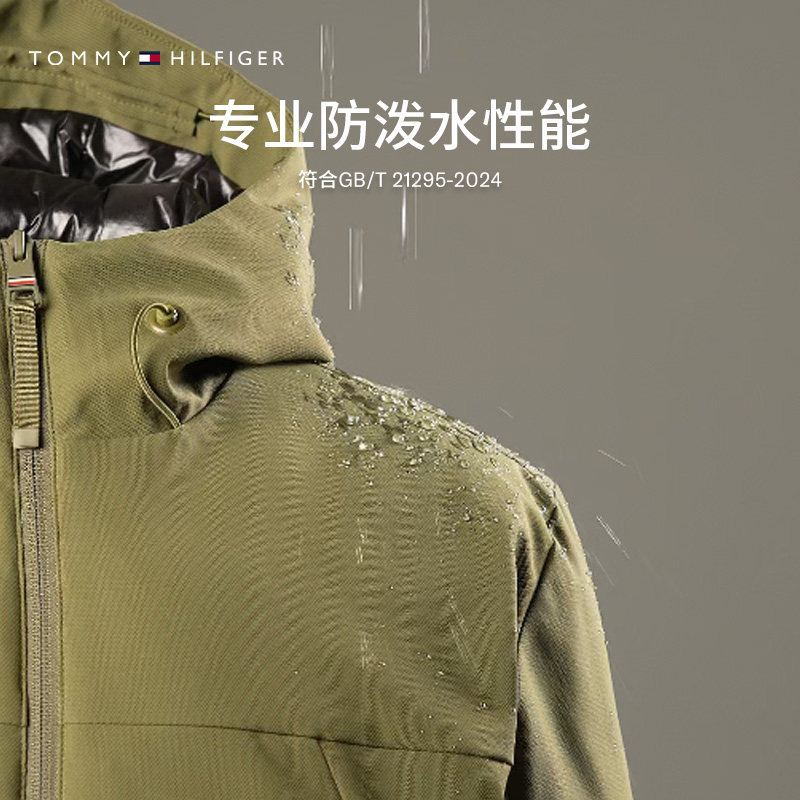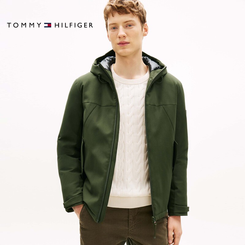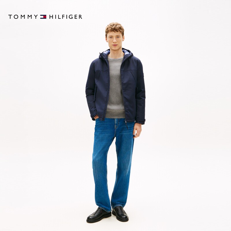 天猫【防泼水】Tommy秋冬男装重磅肌理感商务休闲连帽棉服夹克外套