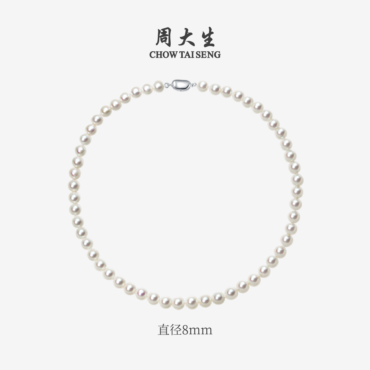 天猫周大生淡水珍珠项链近圆强光颈链锁骨链毛衣链送妈妈女友生日礼物