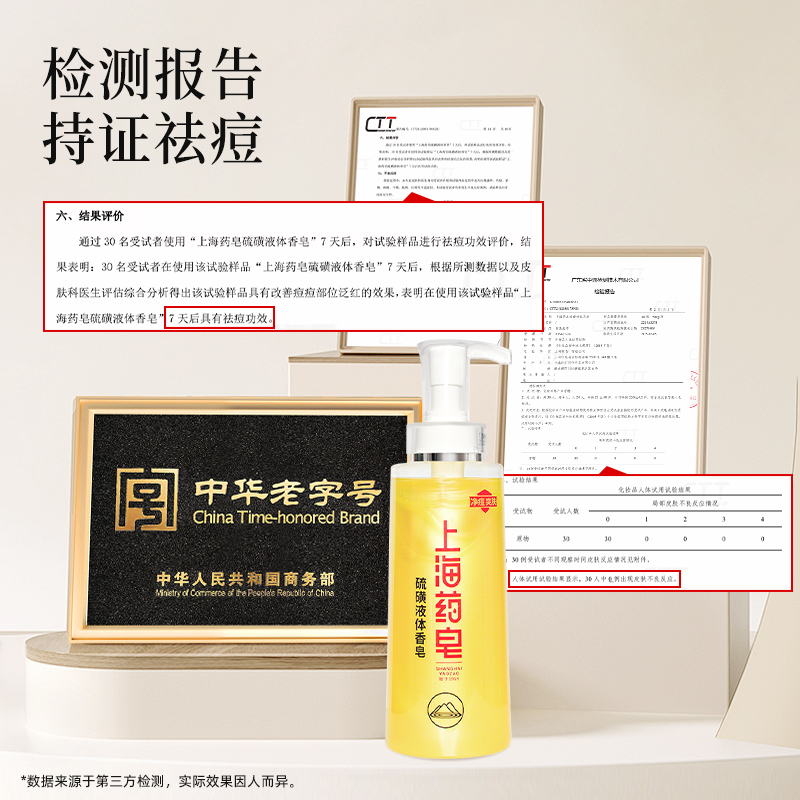 上海药皂硫磺净痘液体香皂2瓶装洗脸洗发皂清洁硫磺皂家庭沐浴皂