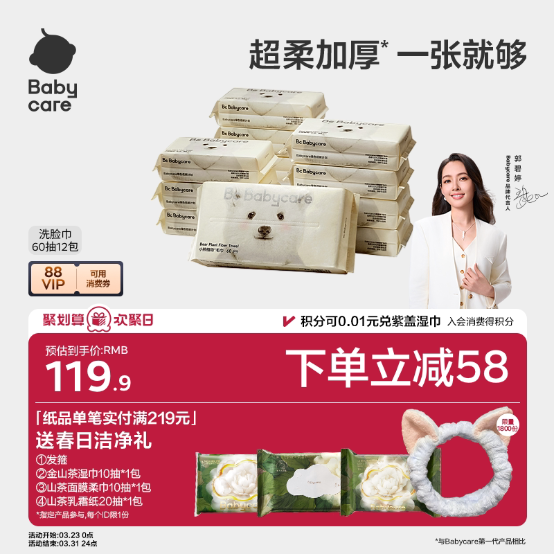 天猫【下拉详情更优惠】babycare小熊洗脸巾绵柔巾一次性加厚超柔擦脸