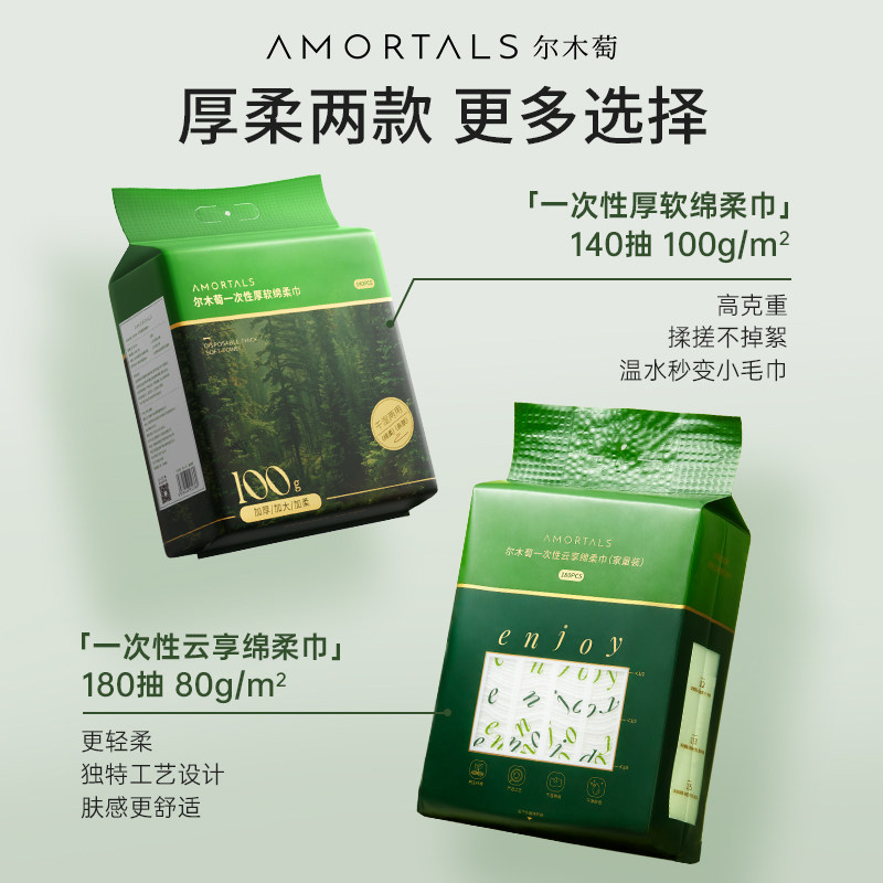 尔木萄一次性洗脸巾,采用优质植物纤维材质,超大尺寸、加厚设计,亲肤柔软,吸水性强,不易掉絮。悬挂抽取式壁挂设计,使用方便,节省空间,随用随取,干净卫生。适用于日常洁面、卸妆、湿敷等多种场景,干湿两用,环保便捷。通过官方旗舰店购买,确保正品品质,安全无添加,敏感肌也可安心使用。尔木萄专注高品质生活护理,致力于为每一位用户提供洁净舒适的护肤体验,是现代家庭和精致人群的贴心之选。