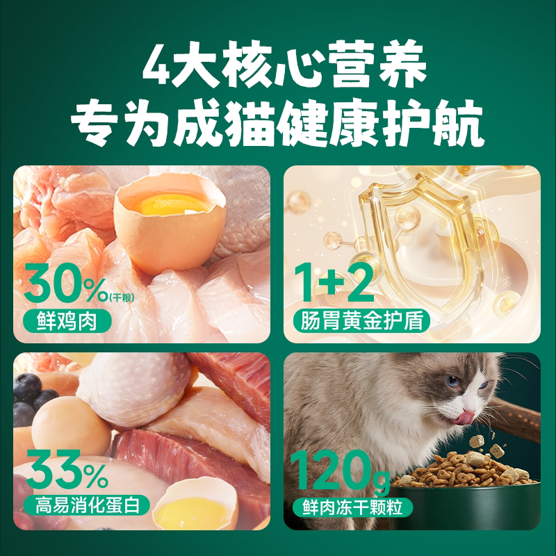 派得猫粮多冻干三拼鸡肉全阶段营养美短布偶猫成幼蛋黄全价粮4斤