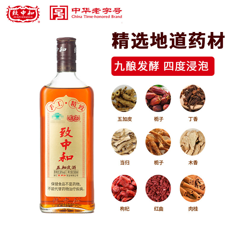 天猫致中和家饮款五加皮酒38度500ml*12瓶装养生保健酒送父母长辈节日