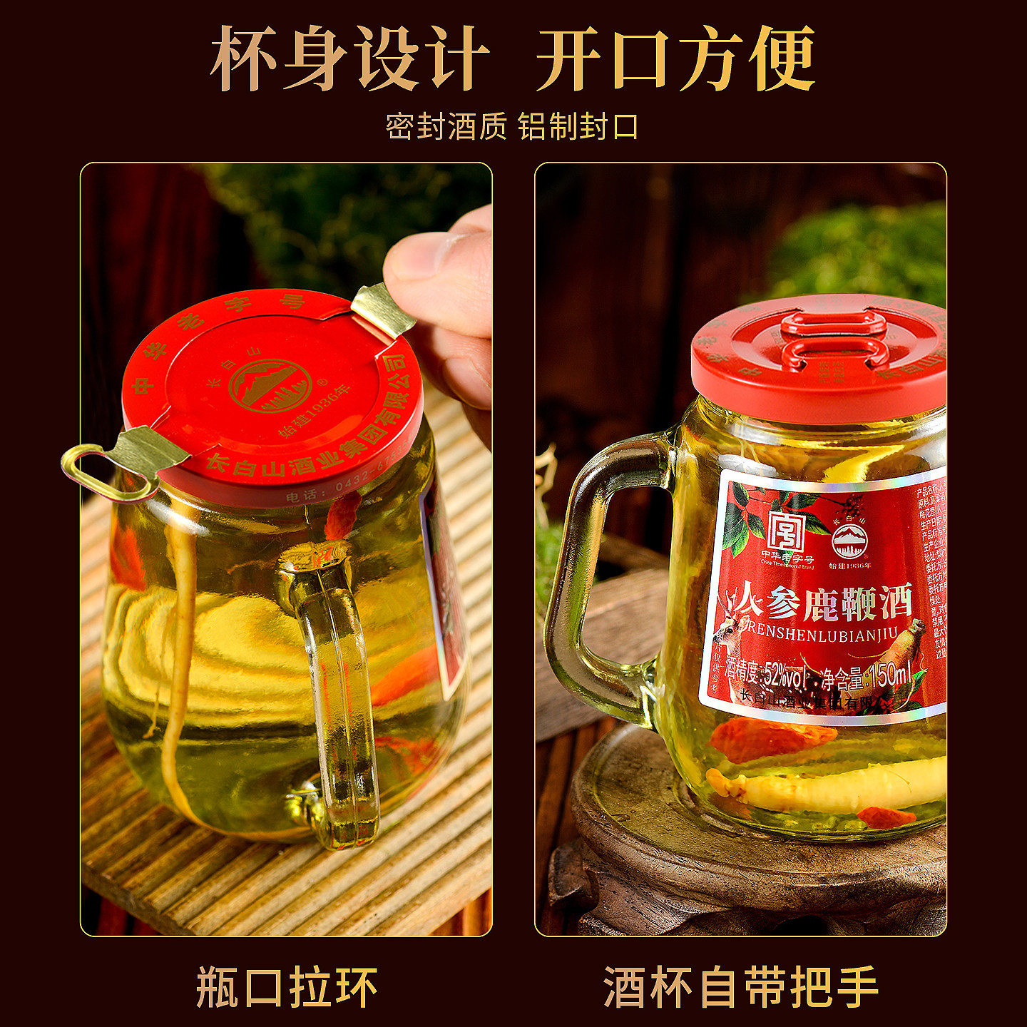天猫长白山人参鹿鞭酒52度小瓶酒人参酒养生滋补酒东北特产节日送礼