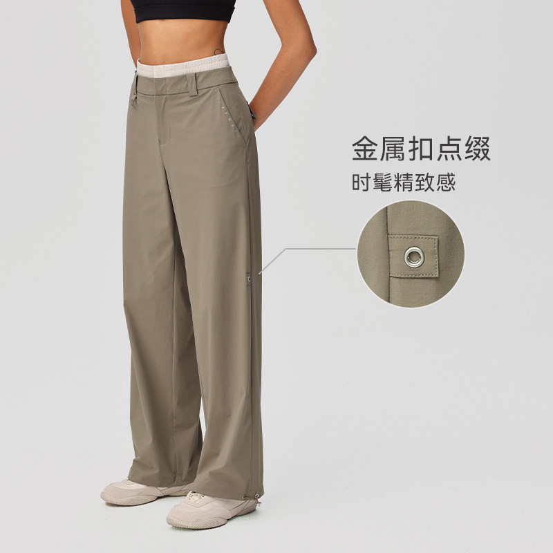 淘健身女孩阔腿运动裤宽松直筒瑜伽裤休闲户外跑步训练长裤套装薄款