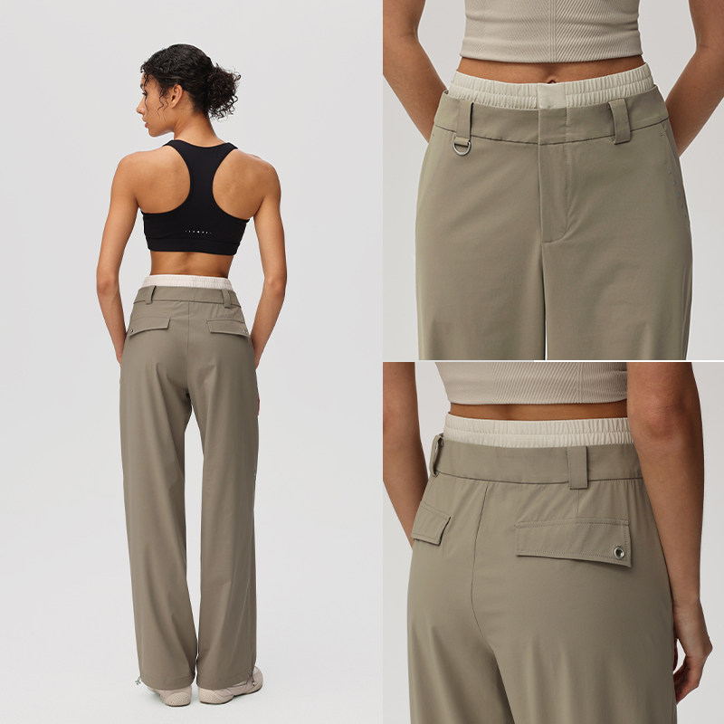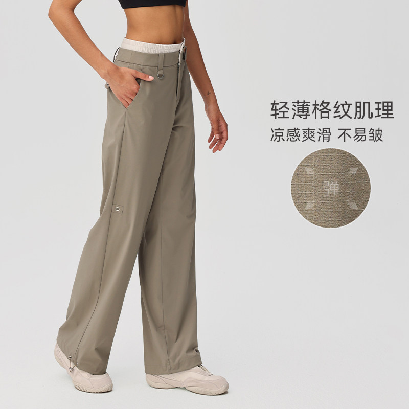 健身女孩阔腿运动裤宽松直筒瑜伽裤休闲户外跑步训练长裤套装薄款