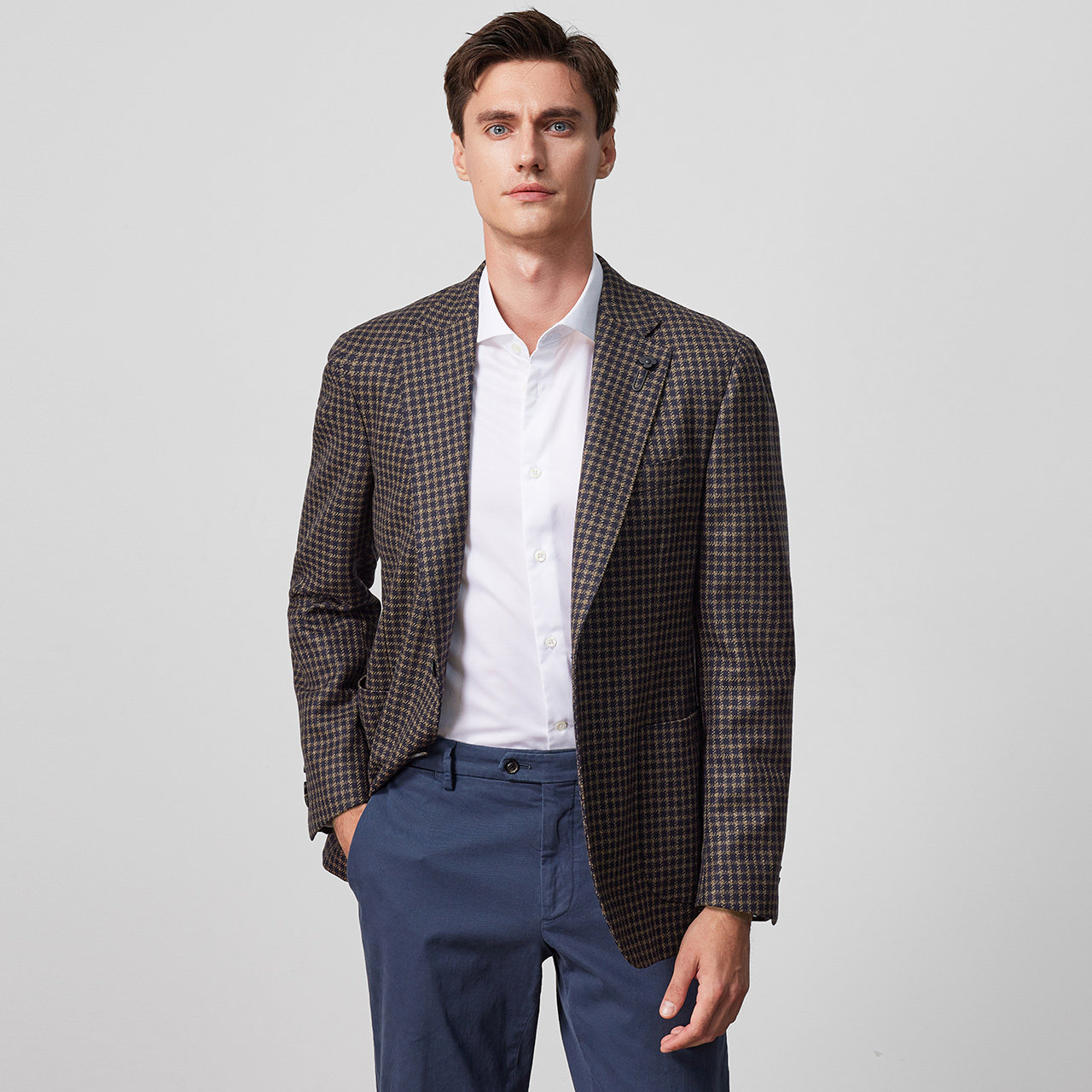 天猫LARDINI意大利进口羊毛千鸟格秋冬单西商务休闲西服男西装外套