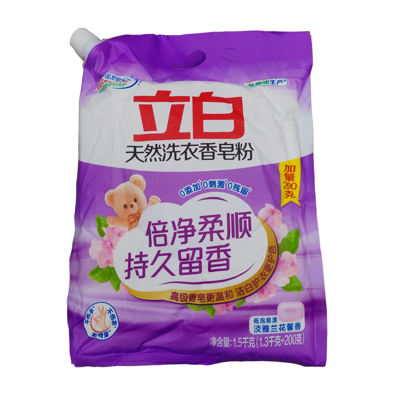 立白天然洗衣香皂粉,融合天然植物成分与幽兰花香,温和洁净同时呵护衣物与双手。采用低泡易漂配方,手洗不伤肤,机洗更省水,轻松漂净无残留。特别添加柔顺护衣因子,洗后衣物柔软蓬松,持久留香。无论是棉麻、化纤还是贴身衣物,都能有效去污并保护纤维结构,延长衣物寿命。独立袋装设计,取用便捷,储存卫生。立白天然洗衣香皂粉,以天然之力,守护衣物洁净与柔护,让每一次洗涤都成为对生活的温柔呵护,是家庭洗护的理想之选。
