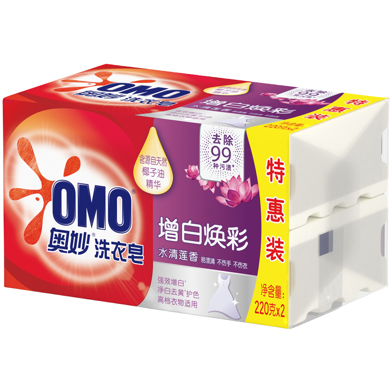淘宝奥妙增白焕彩洗衣皂220g*2 肥皂香皂水清莲香(新老包装随机发货