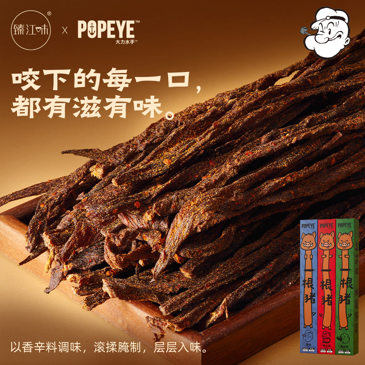 臻江味大力水手一根猪原切猪肉条,精选优质猪后腿肉,采用传统风干工艺结合现代烘干技术,保留肉质纤维与天然肉香。每根120g大分量,厚实有嚼劲,口感层次丰富。特别添加“嘶哈辣”秘制辣味配方,香辣过瘾,越嚼越香,瞬间点燃味蕾。无添加防腐剂,低脂高蛋白,是追剧、办公、户外旅行的理想健康零食。独立小包装设计,方便携带,随时补充能量。臻江味坚持真材实料,还原地道风味,让每一口都充满满足感。一根猪,不止于香,更是对品质的执着追求。