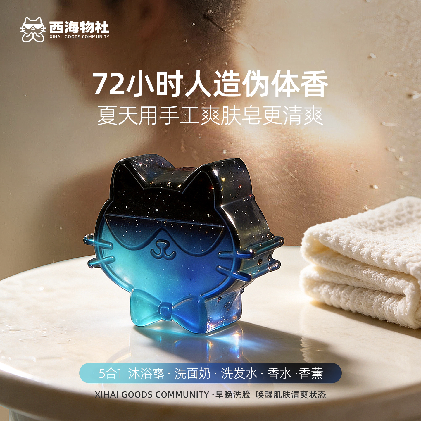 【西海物社】香皂集洁面、洗发、沐浴于一体,专为男士设计。采用天然植物精华,深层清洁毛孔,有效去除油脂与螨虫,控油净肤更彻底。72小时持久留香,清新爽肤,告别汗味困扰。固态设计便携环保,泡沫丰富细腻,温和不刺激,洗后肌肤清爽不紧绷,头发蓬松有型。一瓶多效,满足日常洗护全需求,是现代男性高效、简约生活方式的理想之选。无论是居家、差旅还是运动后使用,都能带来洁净舒爽的极致体验,展现自信清爽的型男魅力。