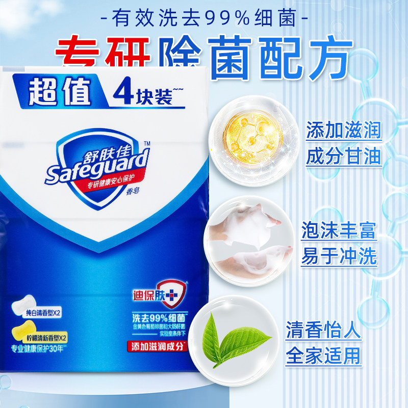 淘宝舒肤佳香皂100g*4块装纯白清香型香皂柠檬味洗手洗澡身体全身肥皂
