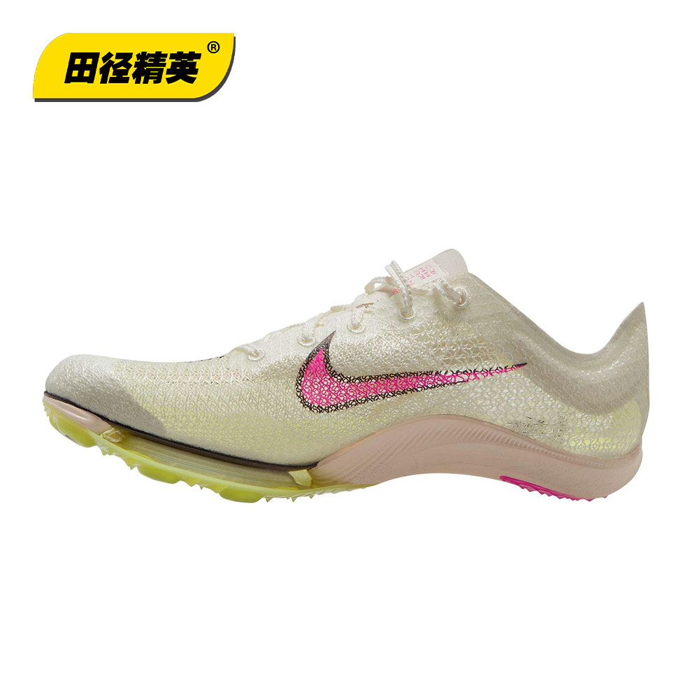 Nike Air Zoom Victory 男女专业中长跑钉鞋是田径精英的竞速利器,专为追求极致速度与高效推进力的中长跑运动员打造。鞋身采用轻量化工程网眼材料,提供卓越透气性与贴合感;中底搭载前掌 Zoom Air 气垫单元,在蹬伸阶段释放强劲回弹能量,提升步频效率。碳纤维板嵌入中底,增强推进力并优化能量传导。鞋钉布局科学,前掌7钉设计确保抓地力与灵活性兼备。整体重量极轻,兼顾稳定性与速度表现,助力运动员在1500米至5000米项目中突破极限,是赛场争锋的理想之选。