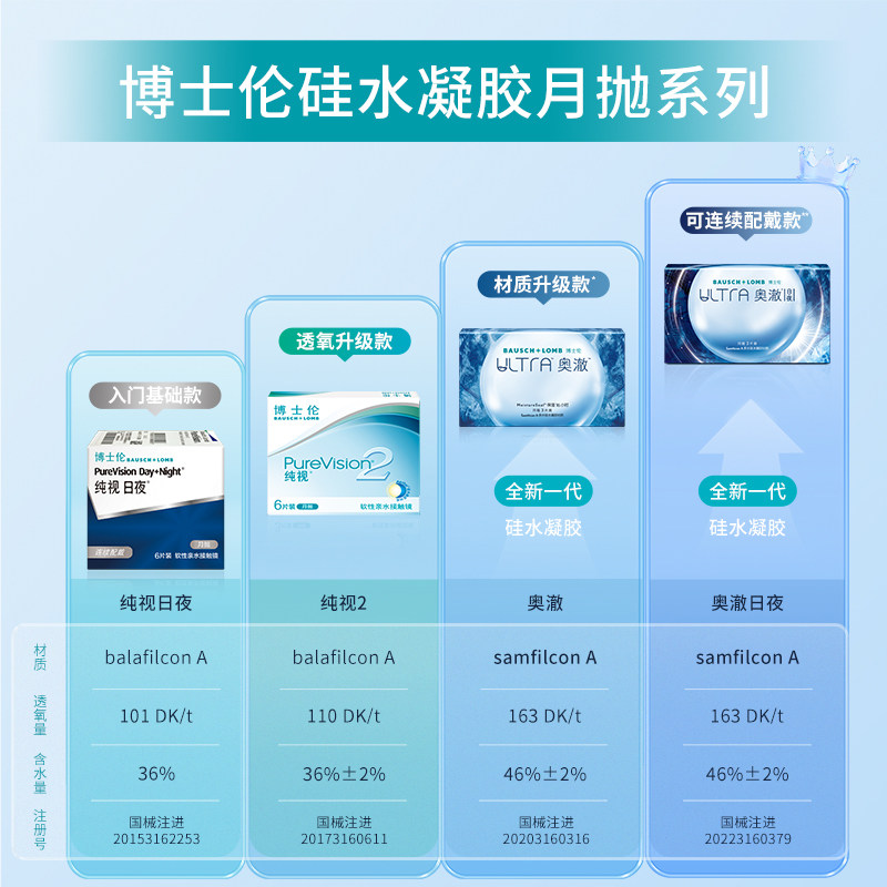 天猫博士伦奥澈硅水凝胶月抛高透氧水润保湿隐形眼镜轻薄舒适高度近视