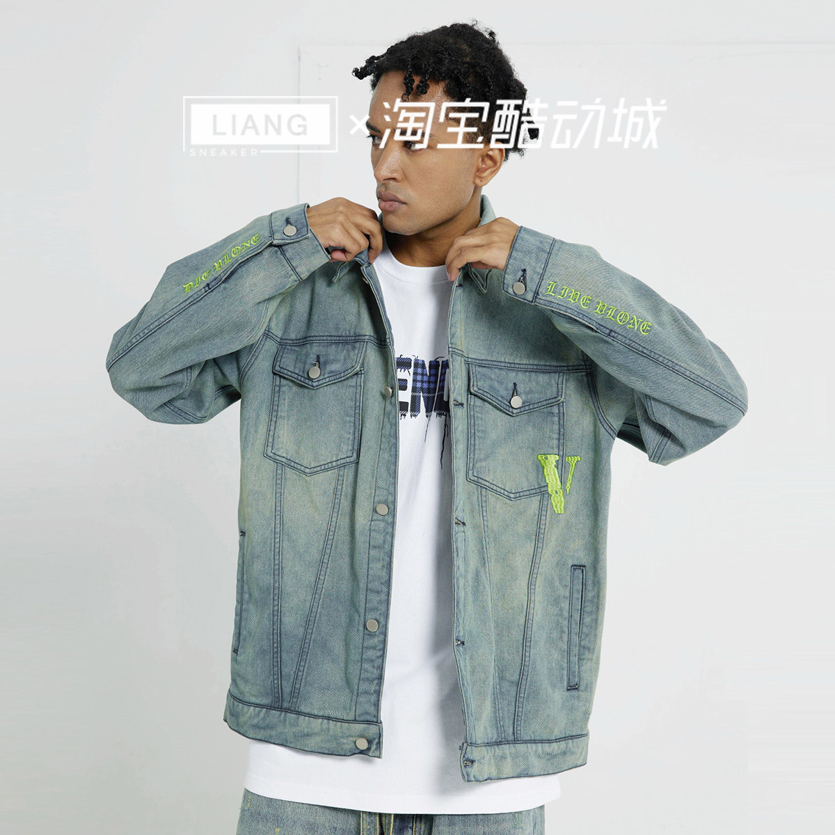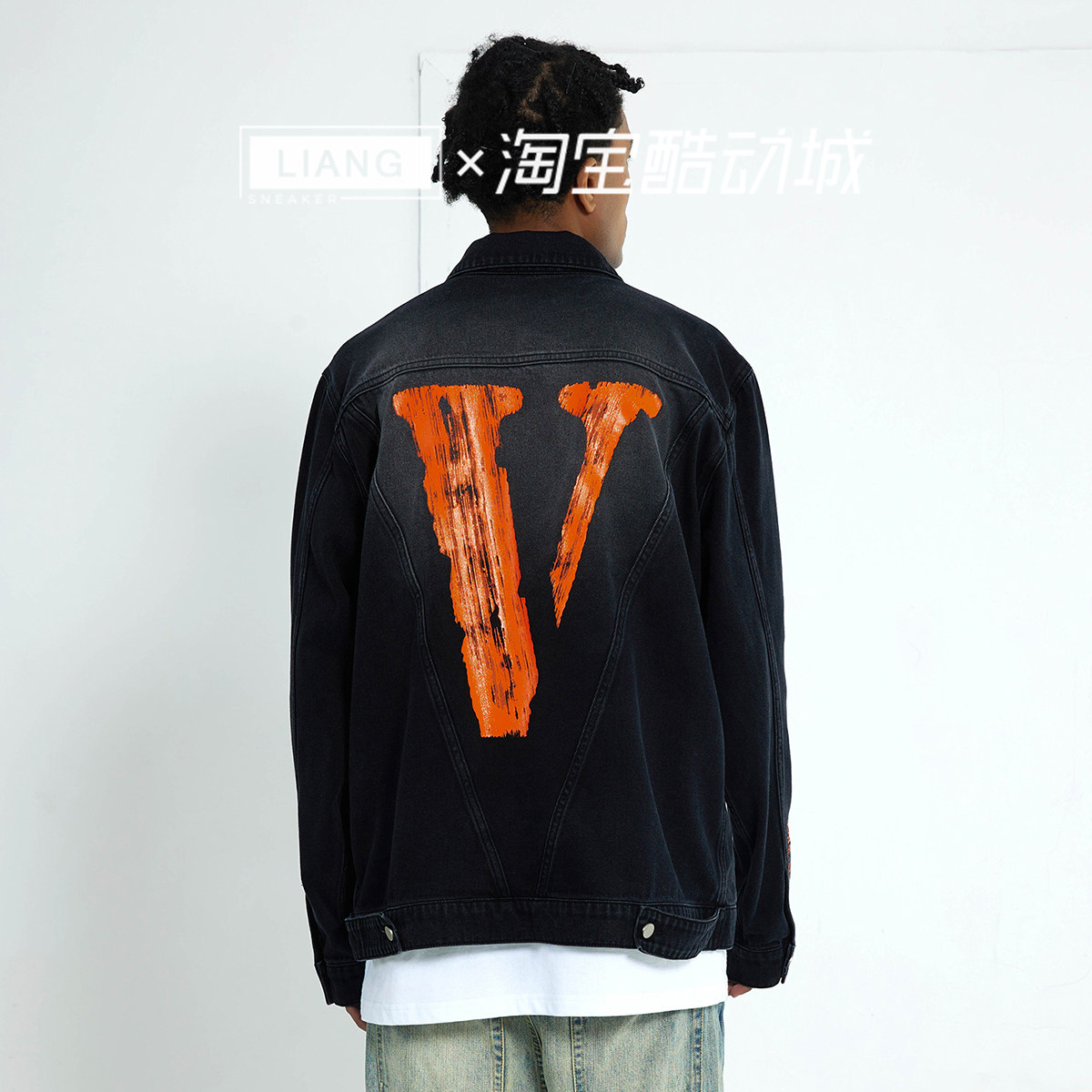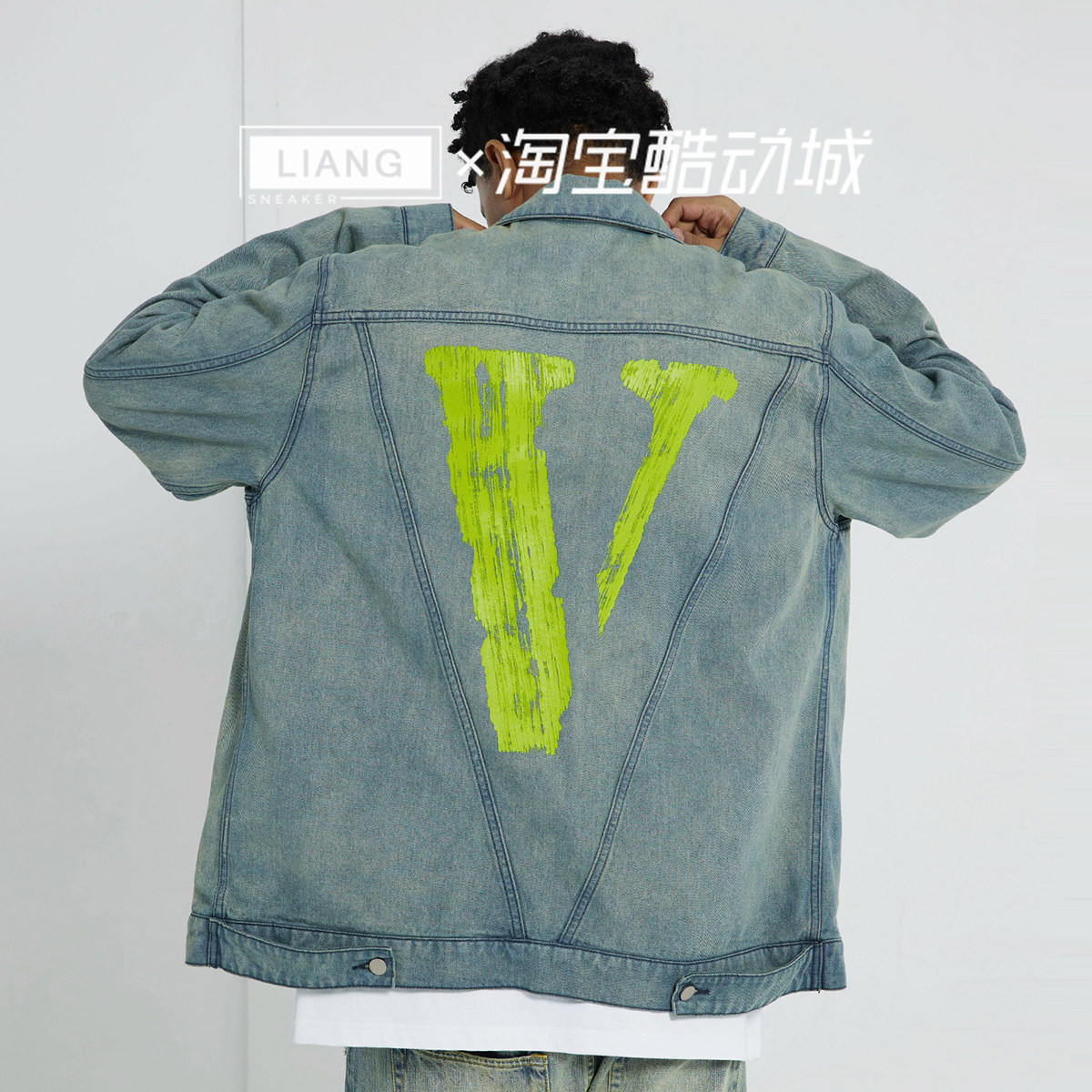 淘宝VLONE 破坏大V字Logo印花 刺绣渐变水洗做旧宽松牛仔外套男女同款