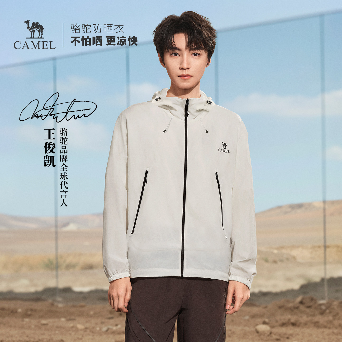 天猫王俊凯同款骆驼男装户外防晒衣男透气时尚运动防水钓鱼新款薄外套