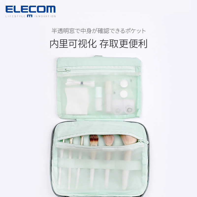ELECOM悬挂式化妆包洗漱包,专为旅行、出差及日常使用设计,集便携、大容量与防水功能于一体。采用优质防水面料,有效防止液体渗漏,保护行李整洁。内部多层分隔设计,合理收纳化妆品、洗漱用品、护肤品等,取用便捷。顶部配备可折叠挂钩,可悬挂于浴室、衣柜或行李箱上,节省空间,使用更灵活。包身轻巧耐用,拉链顺滑,细节精致,适合女性日常通勤、短途出行或酒店洗浴使用。无论是居家收纳还是旅途携带,都能轻松应对,是精致生活的贴心伴侣。