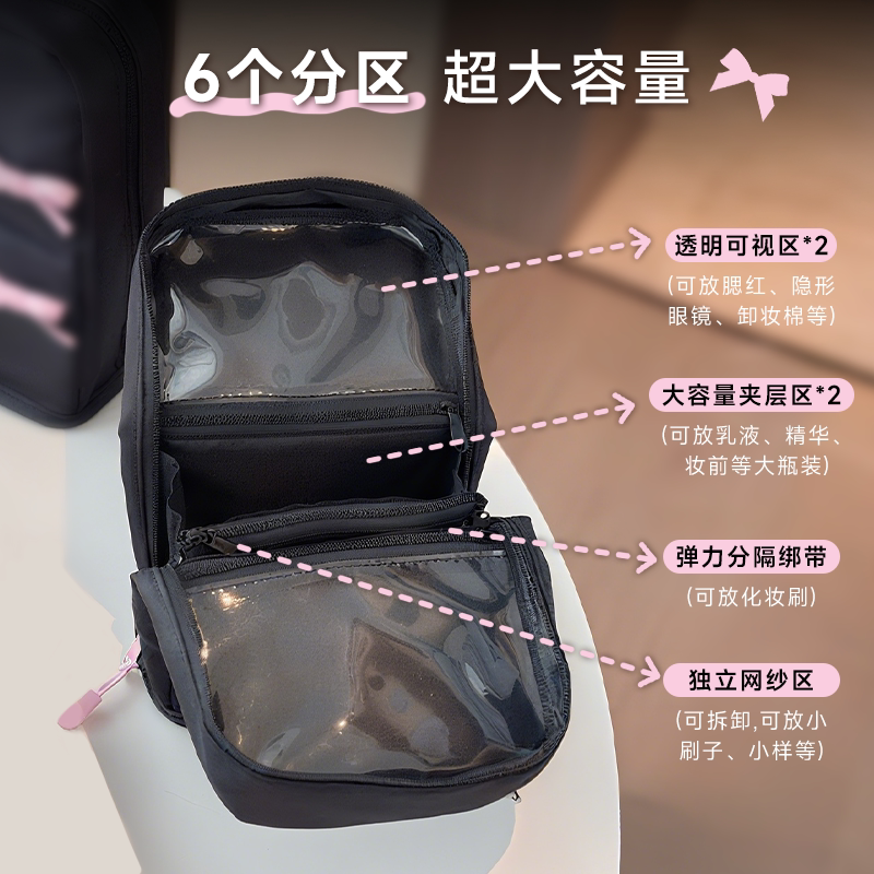 msquare化妆包便携式旅行洗漱包手提化妆袋女大容量化妆品收纳包