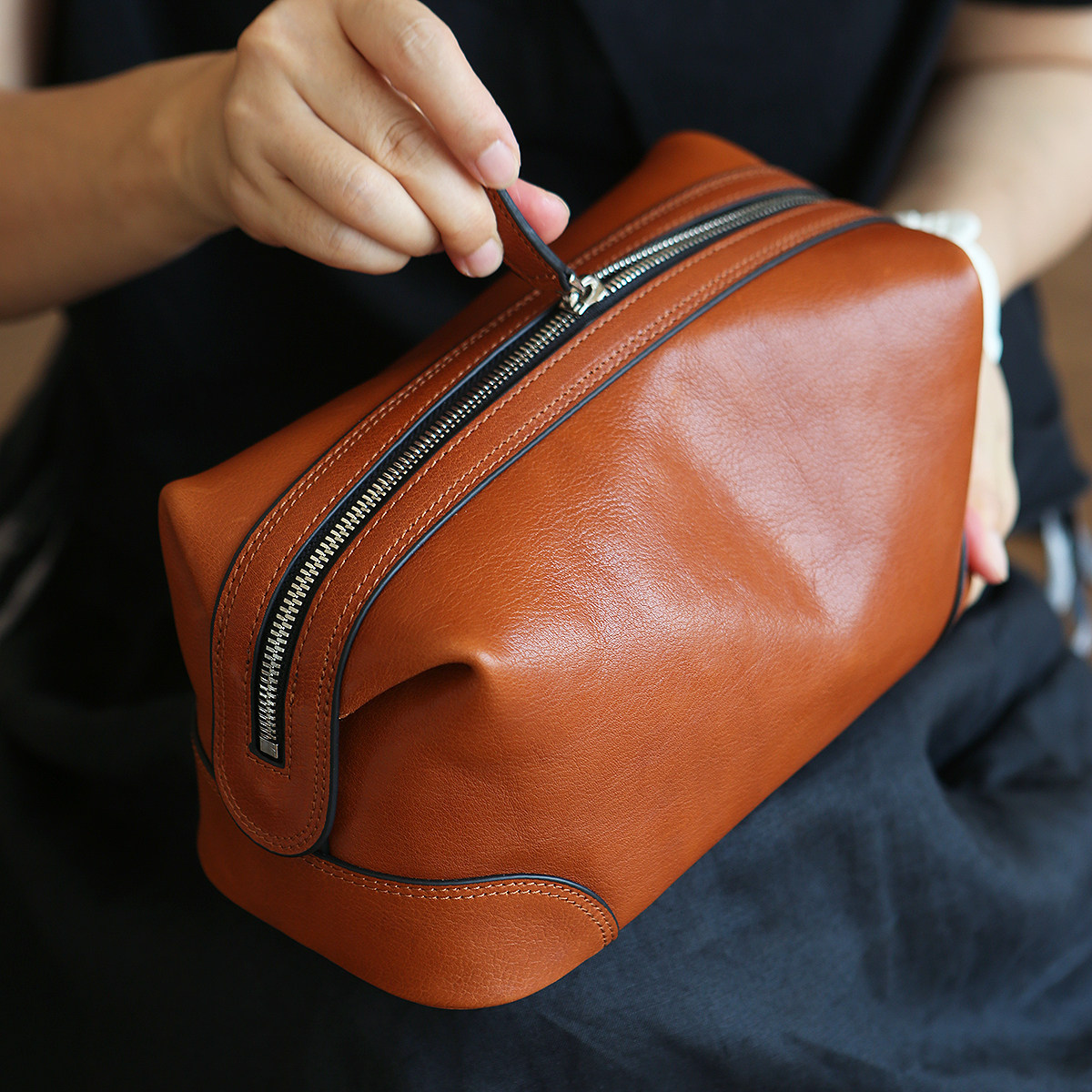 SAINKHO山叩真皮化妆包,精选优质头层牛皮打造,质感细腻,耐用抗磨,彰显高档品味。男女通用设计,大容量分层收纳,轻松容纳洗漱用品、化妆品、旅行配件等,井然有序。拉链顺滑,密封性好,防水内衬贴心保护物品。简约大气的外观,搭配精致五金,适合商务出行、度假旅行或日常使用。无论是男士出差携带剃须工具,还是女士收纳护肤彩妆,都能满足多样需求。SAINKHO山叩,以匠心工艺融合实用与美学,是追求品质生活人士的旅行好伴侣,尽显优雅格调与从容态度。