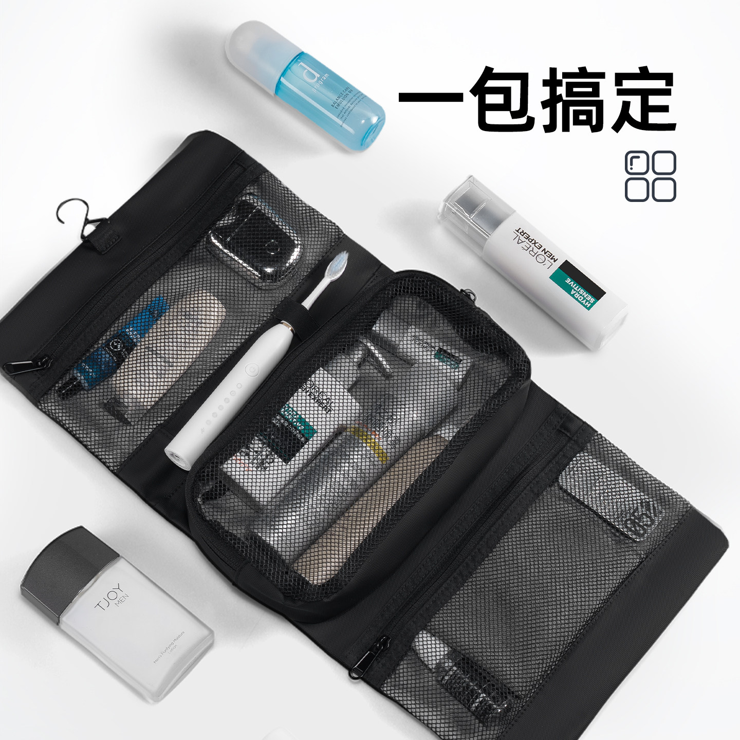 天猫马可莱登便携式网格洗漱包男士折叠分区化妆包旅行收纳整理防泼水