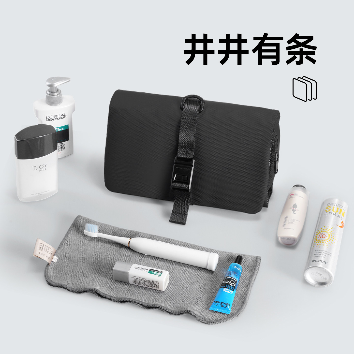 马可莱登便携式网格洗漱包专为男士旅行设计,采用高品质防泼水面料,轻便耐用,有效抵御日常水渍。包身采用多层分区设计,搭配透明网格收纳袋,物品一目了然,轻松分类存放洗漱用品、剃须工具、护肤品等。可折叠结构节省空间,展开后容量充足,满足不同出行需求。拉链顺滑,做工精细,提手设计方便携带。无论是短途差旅还是户外露营,都能高效整理随身物品,保持整洁有序。简约实用的外观兼顾功能与质感,是现代男士出行的理想收纳伴侣。