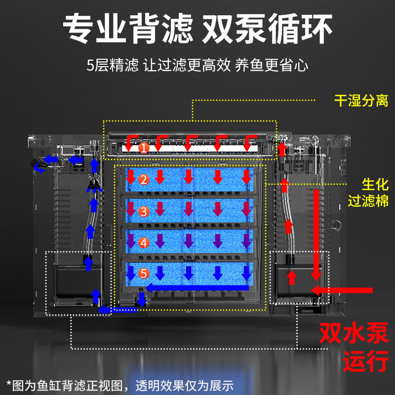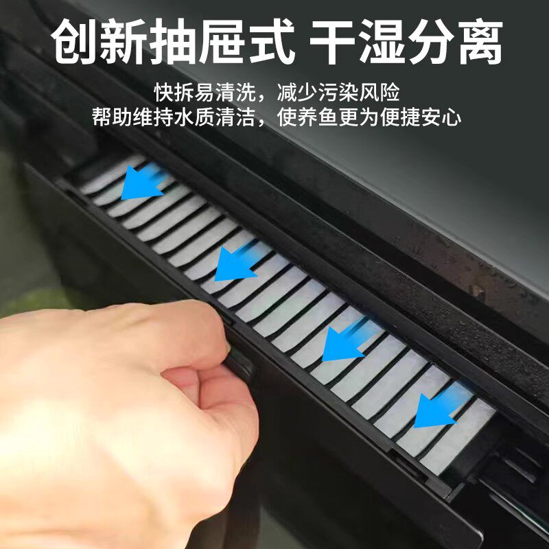侧滤背滤鱼缸桌面溪流缸干湿分离生态造景循环过滤一体机超白鱼缸