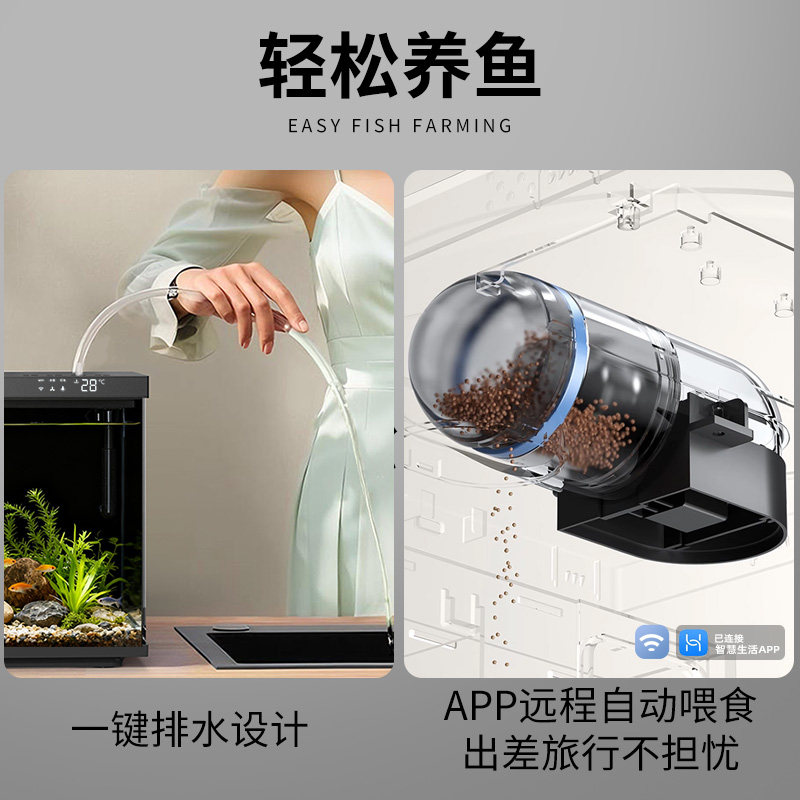 天猫森森智能鱼缸小型客厅过滤一体机造景生态循环超白桌面水族箱新款