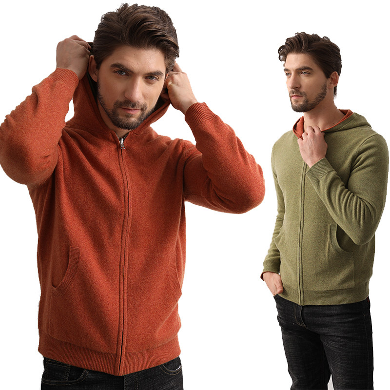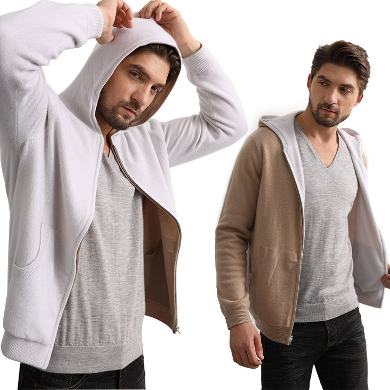 天猫德凯佳山羊绒衫男款针织衫外套加厚毛衣双面两穿连帽卫衣