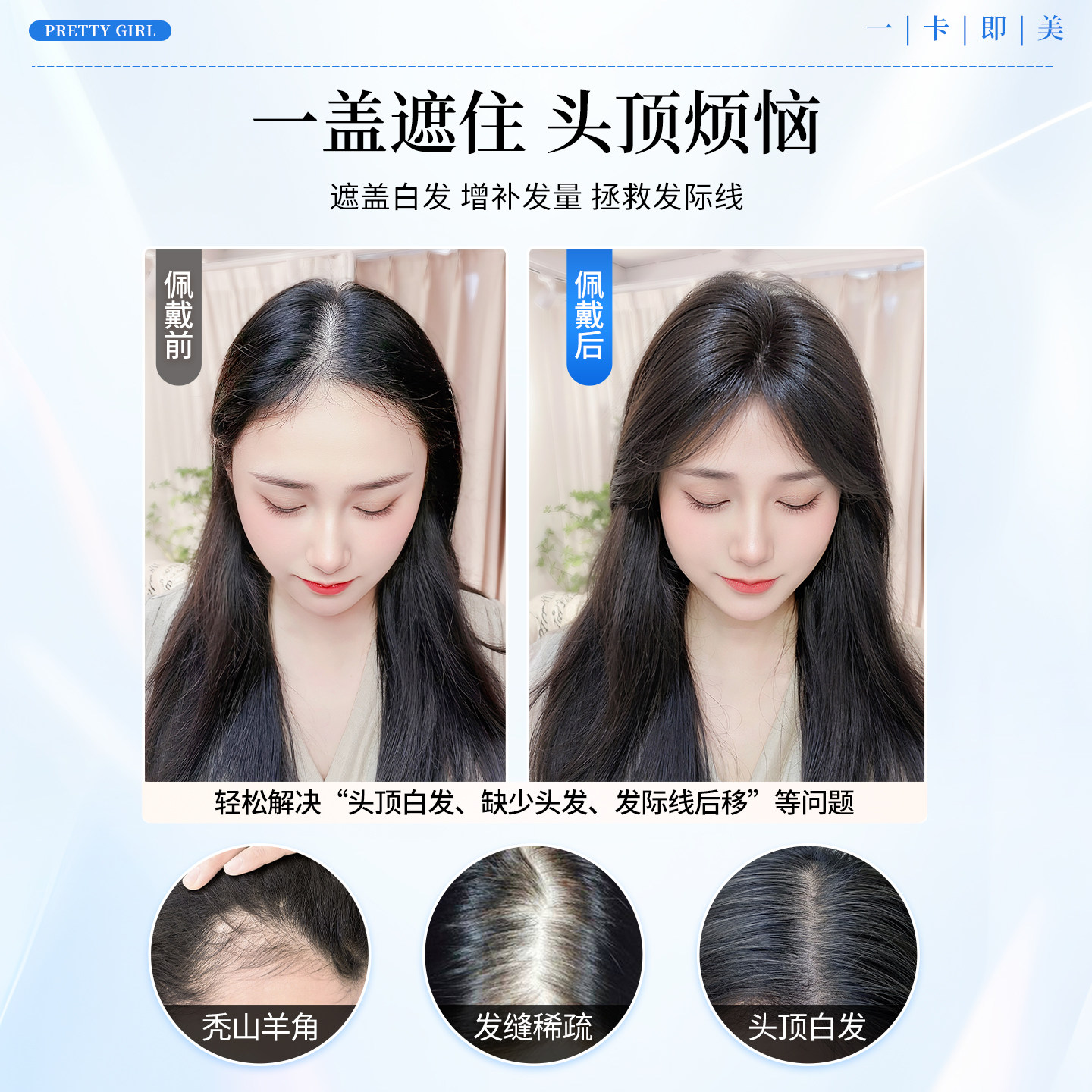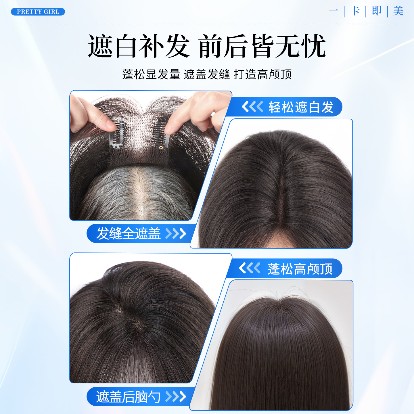 天猫天空树头顶假发女片全真发遮白发蓬松高颅顶增发量自然无痕补发片