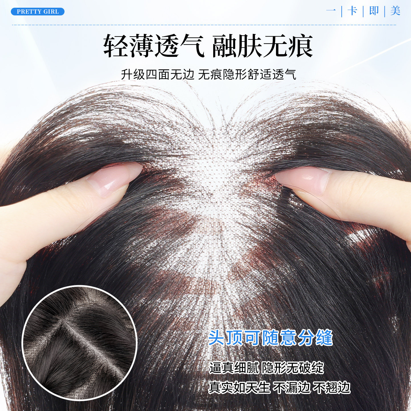 【免发网蕾丝发片】假发女片头顶增发量隐形无痕长发全真发假发片