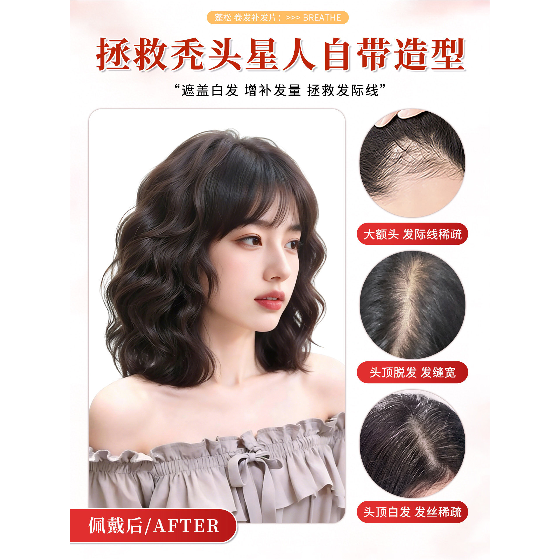 天猫假发片女头顶蓬松遮白发增发量全真发无痕轻薄款自然羊毛卷补发片