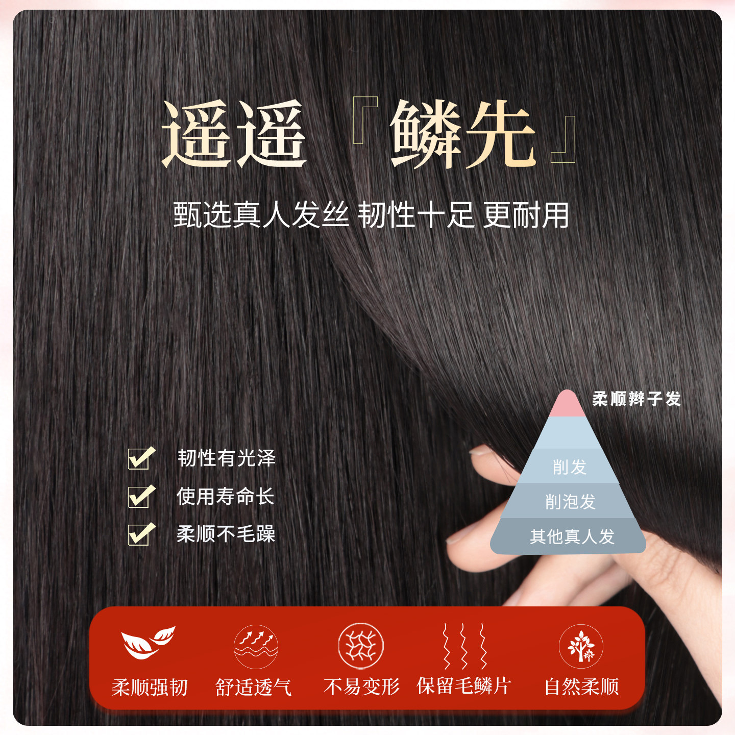 淘淘大壮假发全蕾丝递针头套整顶仿真头皮发际线光头化疗长直发真发