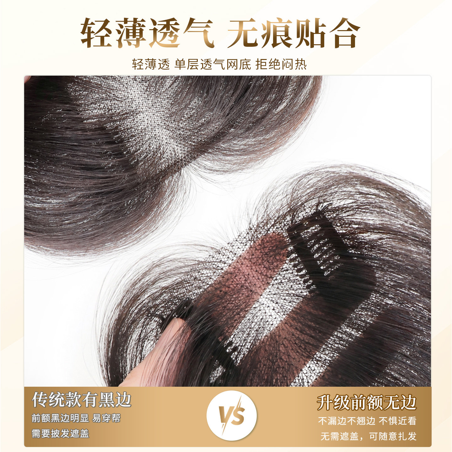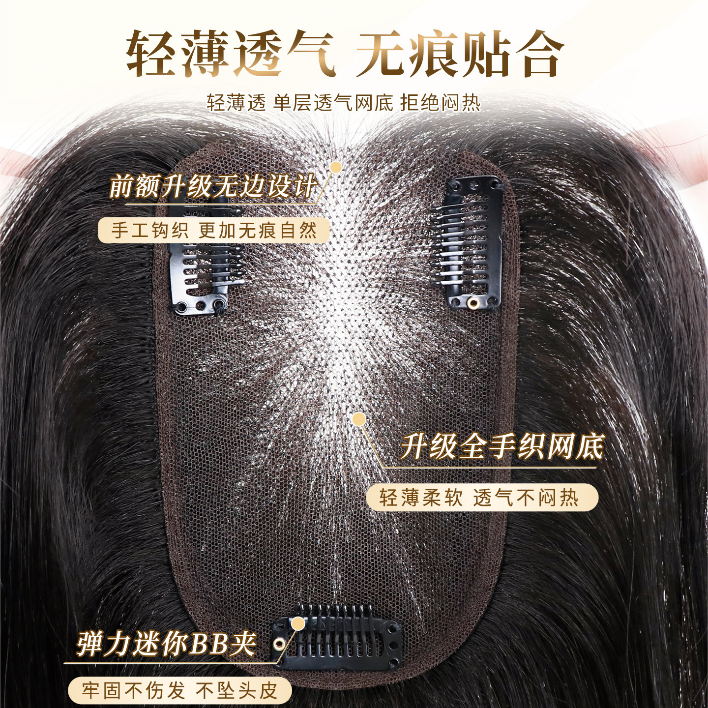 瑞贝卡假发女全真人发冰丝抗菌网头顶补发块隐形蓬松补发遮白发