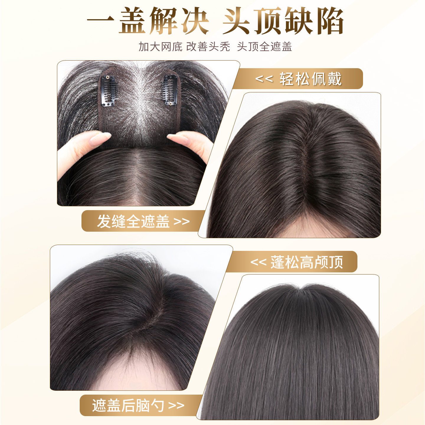 天瑞贝卡假发女全真人发冰丝抗菌网头顶补发块隐形蓬松补发遮白发