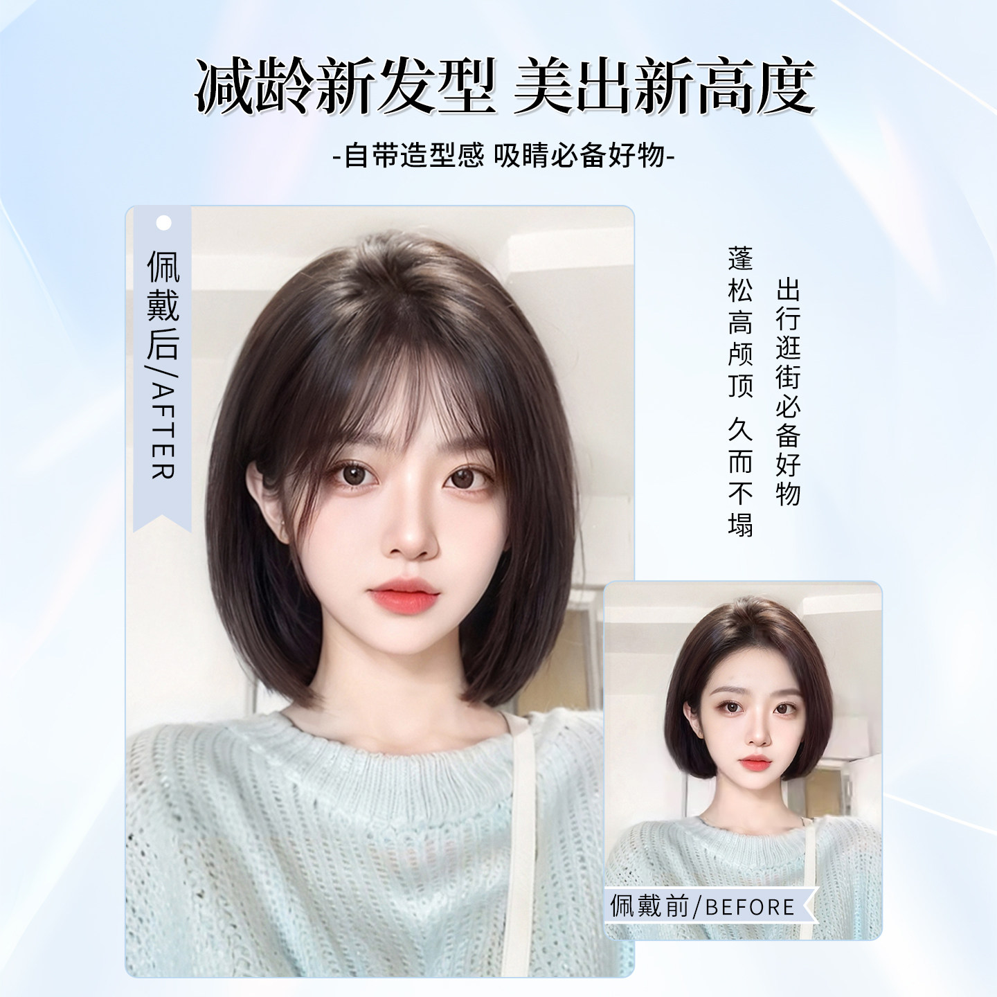 天无需发卡魔术贴假发女片头顶补发蓬松颅顶自然前额真发刘海补发片