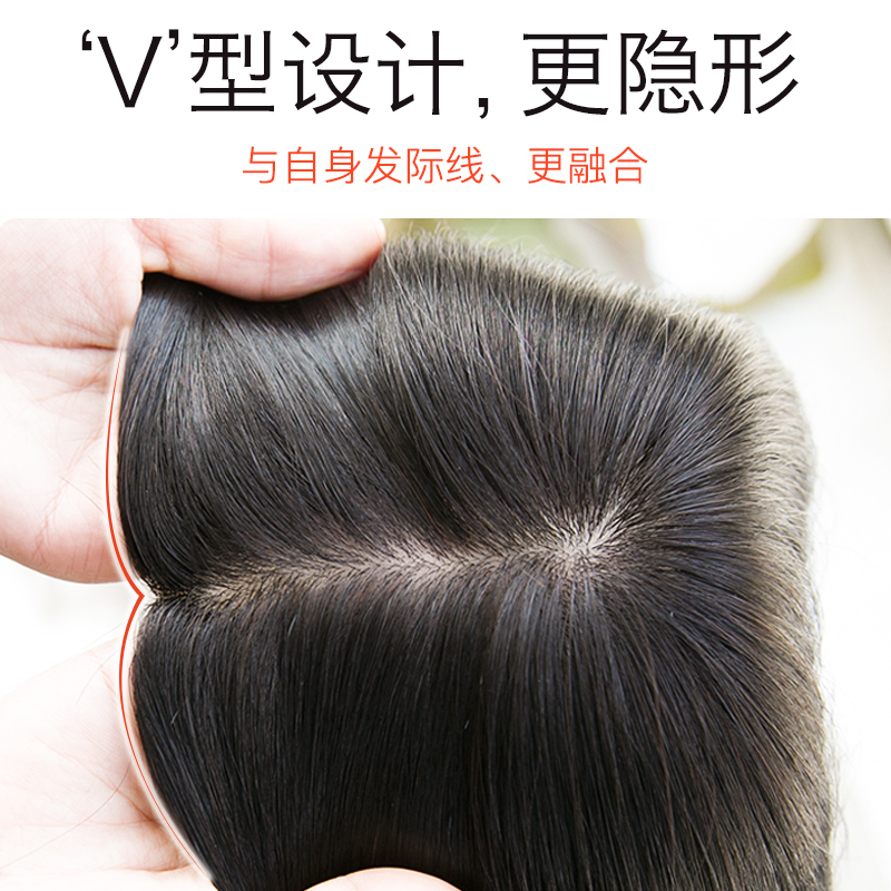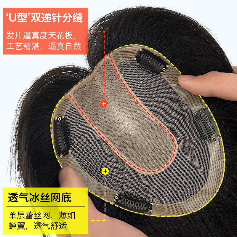 瑞贝卡假发女全真人发冰丝抗菌网头顶补发块隐形蓬松补发遮白发