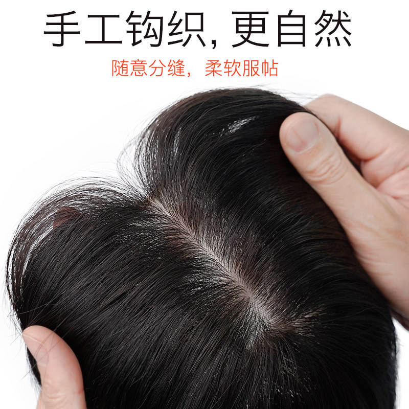 天假发男士真人发丝头顶脱发男生手织补发块中年男式毛寸无痕补发片