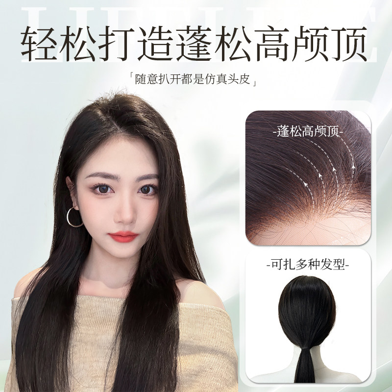 天假发女片头顶高颅顶真发一片式补发增发量蓬松遮盖白发刘海假发片