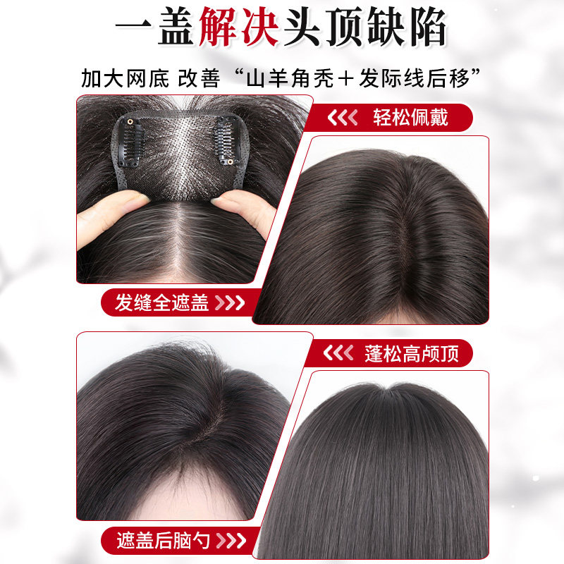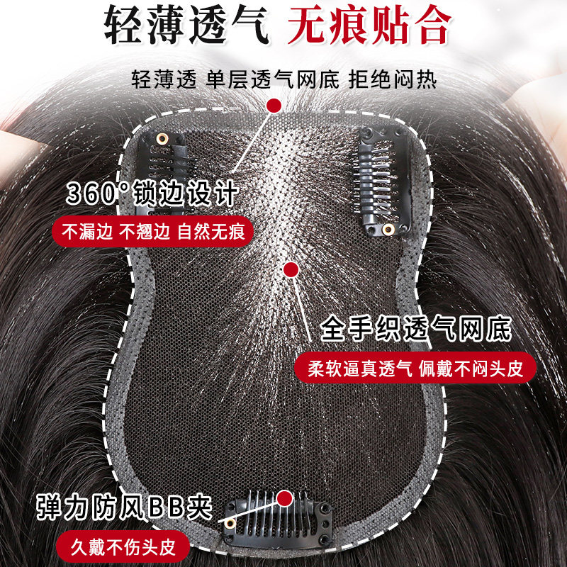 瑞贝卡假发女全真人发冰丝抗菌网头顶补发块隐形蓬松补发遮白发