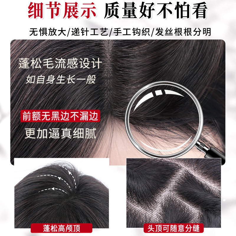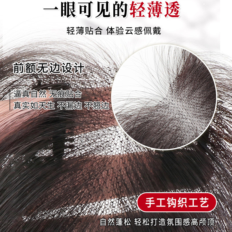 天瑞贝卡假发女全真人发冰丝抗菌网头顶补发块隐形蓬松补发遮白发