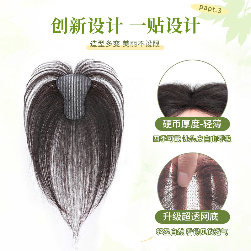 天无需发卡魔术贴假发女片头顶补发蓬松颅顶自然前额真发刘海补发片