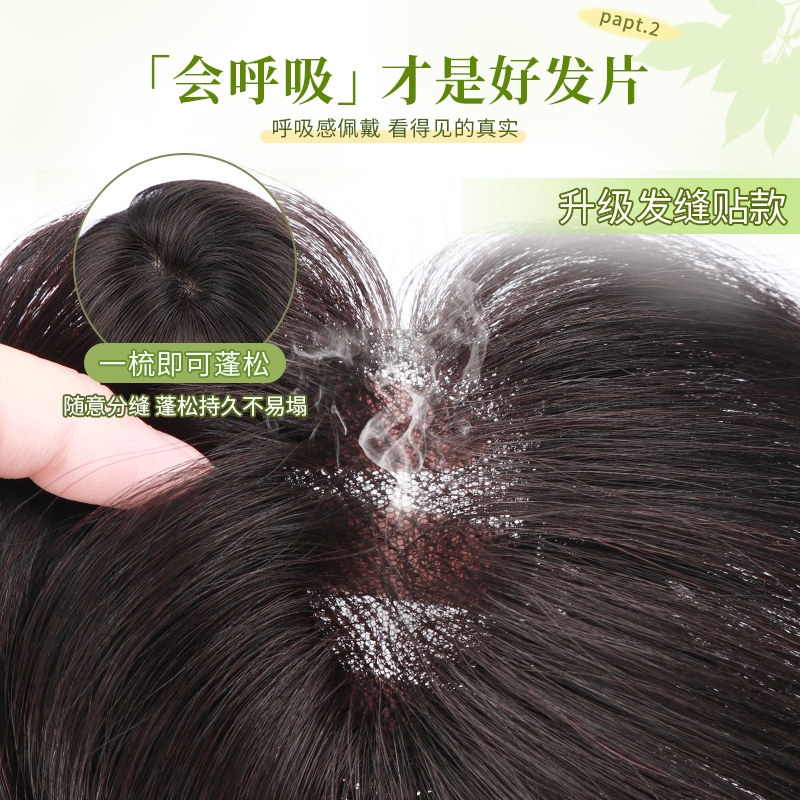 瑞贝卡假发女全真人发冰丝抗菌网头顶补发块隐形蓬松补发遮白发