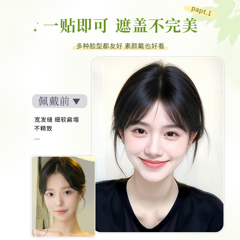 天猫【无需发卡】假发女片头顶补发增发量真发自然前额刘海发缝魔术贴