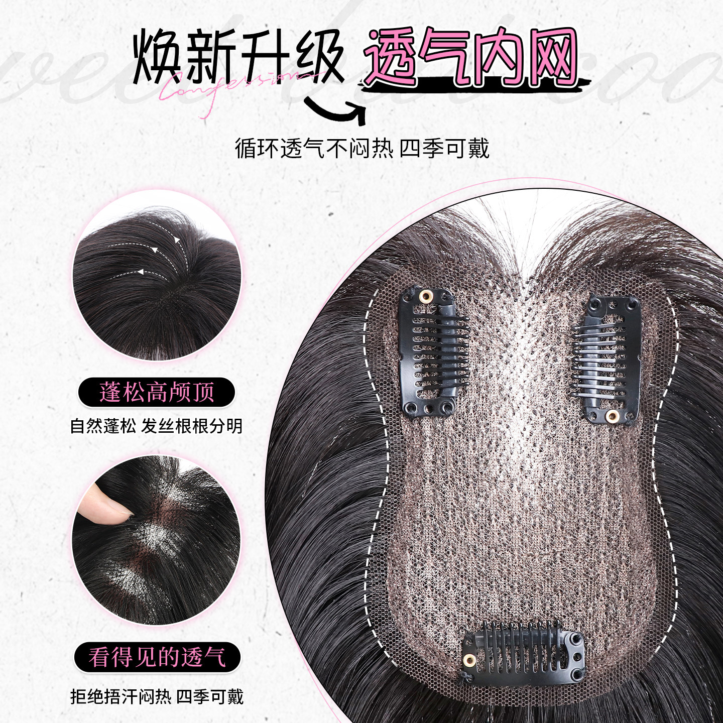 瑞贝卡假发女全真人发冰丝抗菌网头顶补发块隐形蓬松补发遮白发